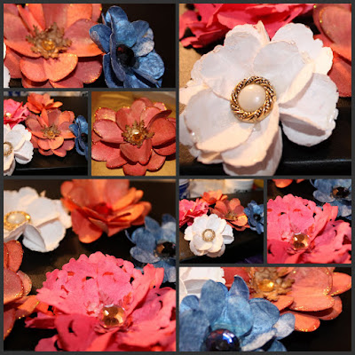 Once dry arrange a fluff petals . Embellish the center with snowflake, button, brad, rhinestone, etc. Use a marker to draw small veins from the center out . Use stickles or glossy accent to further embellish the petals.